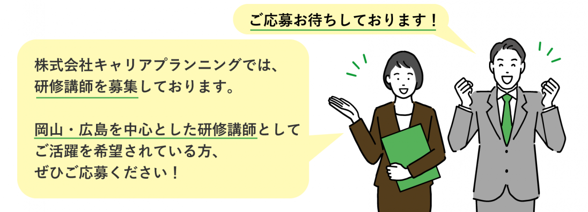 キャリアプランニングでは、研修講師を募集しております。